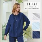 パジャマ レディース 【イクコ IKUKO】 ダブルガーゼ レースネック 全開パジャマ 日本製 綿100% 綿 レース 無地 長袖 ラグランスリーブ 寝巻き 洗濯可能