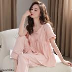 パジャマ レディース レース柄 夏 半袖 綿 可愛い Tシャツ ルームウェア 上下セット 薄手 吸汗 通気 ハーフパンツ 吸水速乾 肌にやさしい