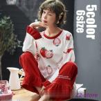 パジャマ ルームウェア レディース 小粒チェリー長袖ルームウェアパジャマ 上下2点セット レディース