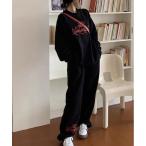 パジャマ ルームウェア ビッグシルエット 刺繍クルースウェット&スウェットワイドパンツ ルームウェア セットアップ 「普段着でもルームウェアでも」