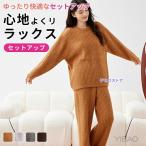 ルームウェア 部屋着 セットアップ リブ ニット 上下セット 体感+7度 ユニセックス パジャマ レディース 冬 暖かい メンズ パジャマ 長袖 ロングパンツ セット