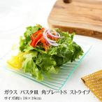 10%OFF お皿 ガラス おしゃれ パスタ皿 ガラス 角プレートS ストライプ シンプル 18×18cm 四角 かわいい 可愛い 食洗機対応 食器 クリア 透明