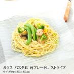 10%OFF お皿 ガラス おしゃれ パスタ皿 ガラス 角プレートL ストライプ シンプル 25×25cm 四角 かわいい 可愛い 食洗機対応 食器 クリア 透明