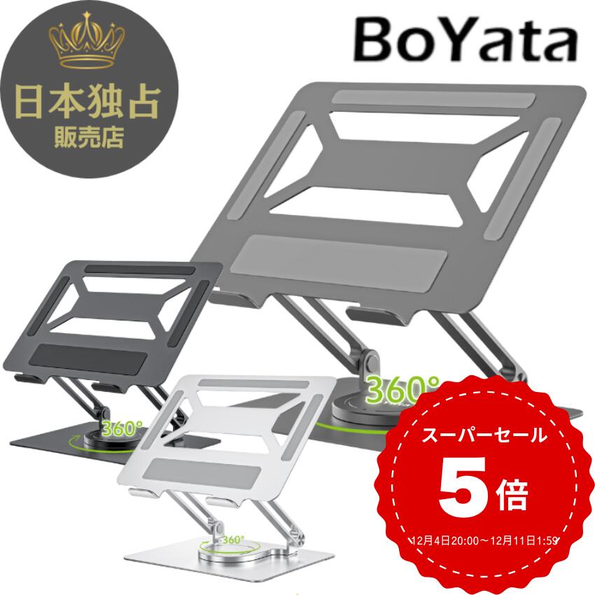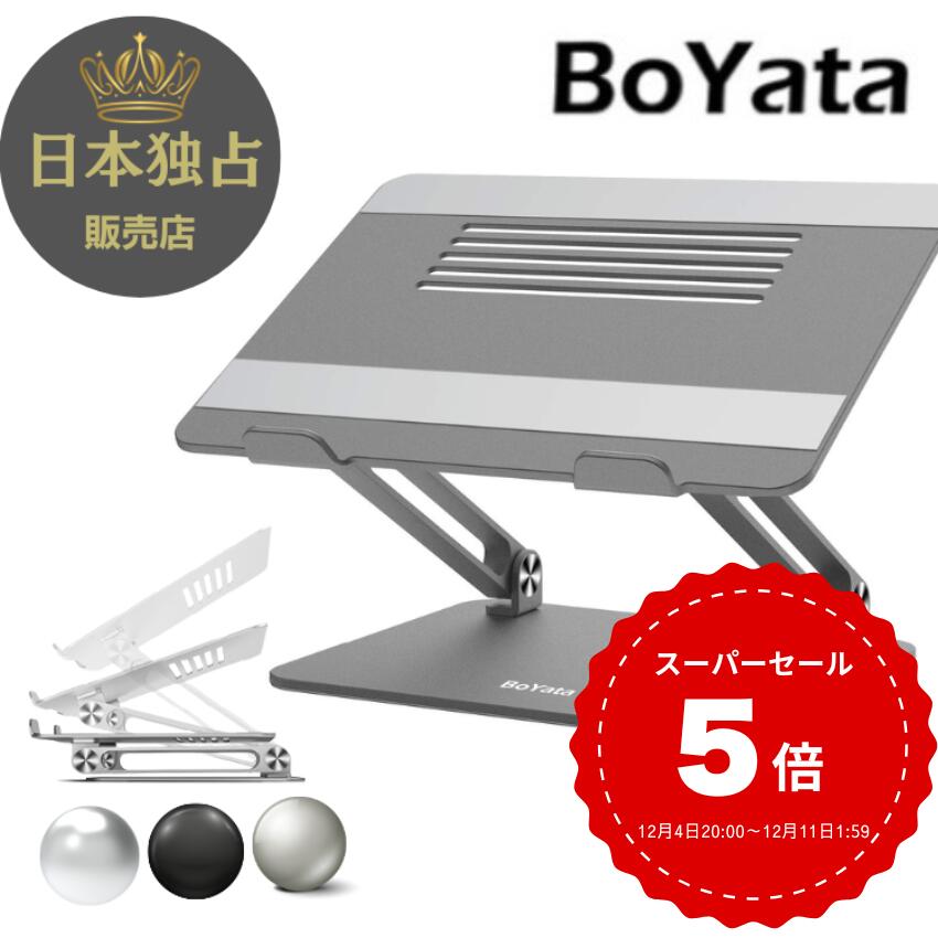 【レビュー3400件突破!】雑誌掲載 BoYata ノートパソコンスタンド N-19 PCスタンド 高さ 角度調整可能 姿勢改善 猫背解消 折りたたみ ノートPCスタンド 滑り止め アルミ合金製 カーボン ホルダータブレット