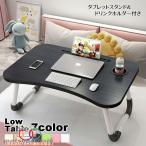 TBHローテーブル ローデスク 折りたたみ式 ベッドテーブル パソコンデスク パソコンテーブル ドリンクホルダー付き タブレットスタンド コンパクト おしゃ