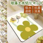 水切りマット 珪藻土 キッチン 大判 おしゃれ 拭ける 30x40cm シンク 水切りラック 吸水 速乾 抗菌 消臭 滑り止め シリコン 食器置き 台所用品 洗面所マット