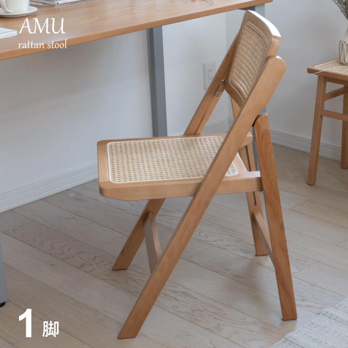 折りたたみ ラタン チェア 木製 椅子 ラタン家具 折り畳み フォールディングチェア デスク チェア 一人掛け おしゃれ 北欧 学習 在宅 テレワーク オフィス パソコン 天然木 ナチュラル 籐編み ウッド 籐