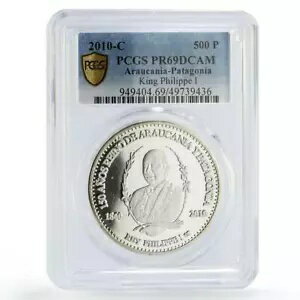 フランス アラウカニア パタゴニア 500ペソ フィリップ1世 PR69 PCGS銀貨 2010年