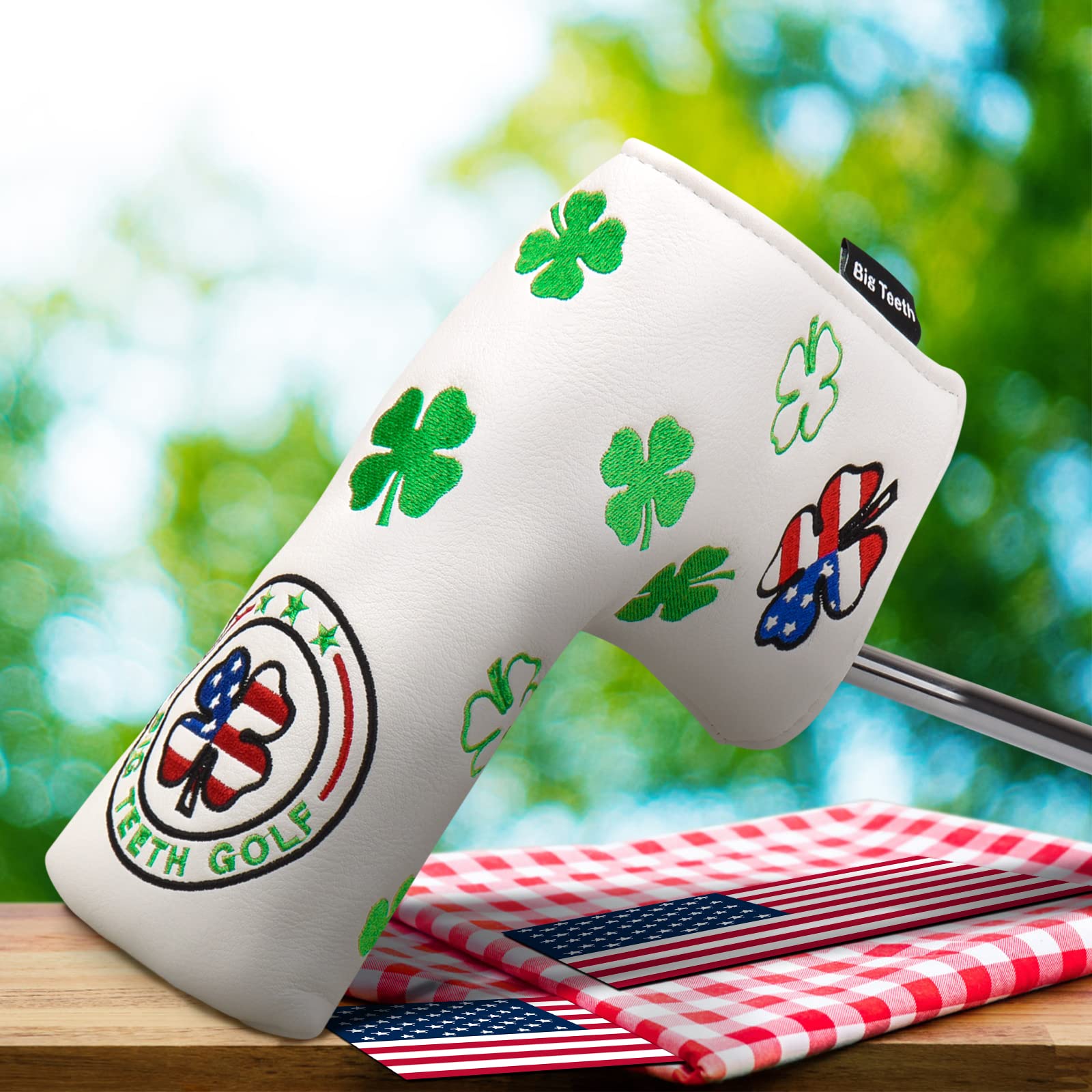 パターカバー ピン型 マグネット ゴルフ パターカバー ピンタイプ ブレード型 クローバー刺繍 ヘッドカバー ミズノT-ZOID RV101 RV105 テーラーメイド TP コレクション SOTO JUNO など対応 (パターカバー ピンタイプ)