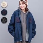 デニムコールパッチシャツ / デニム生地 ツイル生地 コーデュロイ パッチワーク 幾何学刺繍 軽アウター 羽織り トップス レディース 秋 冬 長袖 シャツ