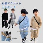 男の子 上下セット スウェット 春秋 長袖 トレーナー スウェットトップス スウェットパンツ 2点 男児 フェイクレイヤード パッチワーク