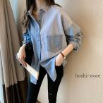 デニムシャツ レディース パッチワークシャツ ウエスタンシャツ デニム シャツ トップス 長袖 ロング タンガリー シャンブレー 切替え ストライプ ゆったり