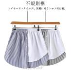 付け裾 シャツ生地 レイヤード つけ裾 ストライプ柄 パッチワーク レディース 春 夏 秋 冬 重ね着 つけ裾 インナー 前後差 イレギュラーヘム ゴ