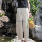 サルエルパンツ ロングパンツ 民族風 文芸風 ガウチョパンツ レディース 綿麻 パンツ リネン ポケット 着痩せ カジュアル ウェスト ゴム パッチワーク 春 夏