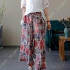 レディース 綿麻 ガウチョパンツ ワイドパンツ サルエルパンツ ウェストゴム 9分丈 パッチワーク 民族風 文芸風 春 夏 秋 花柄 シンプル ゆったり 無地 民族風