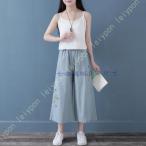 ワイドパンツ レディース 綿麻 ウェストゴム ポケット付き ロングパンツ ガウチョパンツ リネン ゆったり 着痩せ カジュアル パッチワーク 民族風 文芸風 春