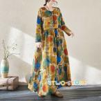 ワンピース 半袖 レディース マキシ丈 フレンチスリーブ パッチワーク 柄 エスニック風 鮮やか ポケット付き ラージサイズ ワンサイズ