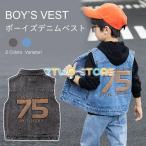 男児 デニムベスト 秋 ベスト 男の子 ジレベスト 前あき デニム チョッキ 子供 アウター ノースリーブ 春 キッズ 前あきジレ デニムジレ