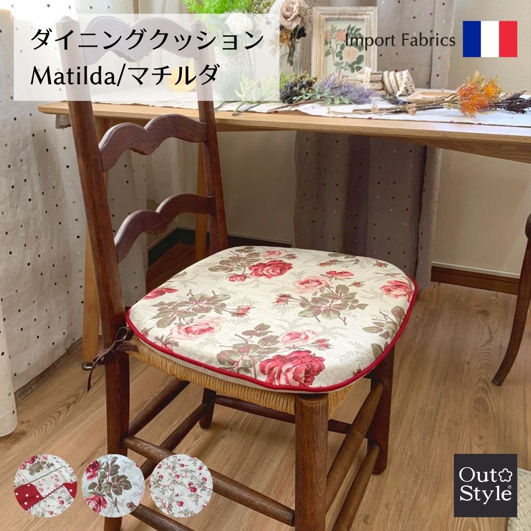 【15%OFF★楽天スーパーSALE】ダイニング チェア シート クッション 45x43cm マチルダ 花柄 リネン 麻 大花 小花 パッチ ワーク おしゃれ インポート フランス製生地 中身セット 車 カバーが外せて洗える 椅子用クッション バテイ 引っ越し 新生活