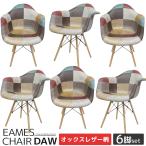 【全品最大P23倍!17日9:59まで】イームズ チェア パッチワーク DAW Eames ヴィンテージ レザー合皮柄 オックス生地 アームシェルチェア 木脚 デザイナーズ 家具 イームズチェア 北欧テイスト ジェネリック家具 レザー 6脚セット【EM-38】