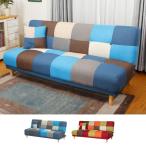 \12時〜★ポイント10倍!/ ソファベッド パッチワークソファー シングル 3段階リクライニング ソファーベッド 3人掛けソファ リクライニングソファー おしゃれ かわいい パッチワーク柄生地 ソファベッド ソファーベッド 木脚 ファブリック