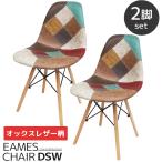 イームズ チェア パッチワーク Eames DSW ヴィンテージ レザー合皮柄 オックス生地 スクープ デザイナーズ家具 レザー 2脚セット EM-57
