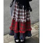 スカート Nia(ニア)/チェック柄レイヤード パッチワークロングスカート