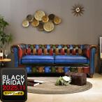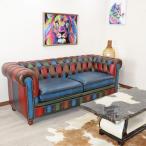 ソファ ソファー 3人掛け チェスターフィールド 革 本革 レザー 総革 3人掛けソファ 本革 アンティーク調 パッチワーク マルチカラー 3Pソファ 開梱設置付