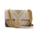 シャネル パッチワーク 12番台 ラムスキン チェーンショルダーバッグ ゴールド シルバー CCマーク 斜め掛け シルバー金具 中古 送料無料