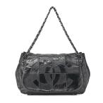 CHANEL シャネル チェーンショルダーバッグ ココマーク パッチワーク フルフラップ ラムスキン×エナメル 黒(シル