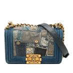 シャネル ココマーク ボーイシャネル20 チェーンショルダーバッグ パッチワーク ブルー マルチカラー デニム レディース CHANEL 【中古】