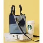 トートバッグ 異素材デニムパッチワーク風2WAYバケツバッグ レディース