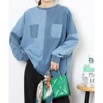 トレーナー スウェット myke インディゴ裏毛パッチワークポケットプルオーバー レディース