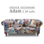 ソファー ソファ 2タイプ選べる おしゃれ パッチワーク柄 クッション付き カラフル 2.5人掛け アダムIII 布張り クラシック調 チェスター型 完成品 輸入品