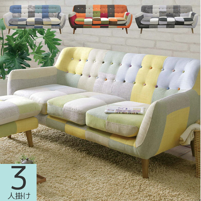 \全商品に使える11%offクーポン!!/ ソファー ソファ 肘掛け おしゃれ 北欧 3人掛けソファー クッション性 3人掛け 3Pソファ パッチワーク調 かわいい 3P 脚付き 三人掛け 3人用 肘付き 選べる4色
