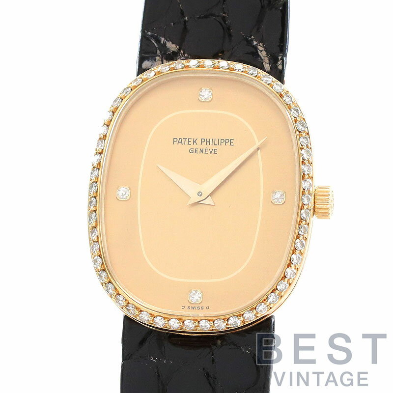 【OH済】 パテックフィリップ 【PATEK PHILIPPE】 ゴールデンエリプス 4382 レディース シャンパン K18イエローゴールド 腕時計 時計 GOLDEN ELIPSE CHAMPAGNE GOLD K18YG PP ダイヤモンドベゼル【中古】