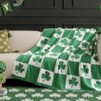 【並行輸入品】Horaldaily 聖パトリックの日 フランネルブランケットスロー、グリーンバッファロー格子柄シャムロックパッチワーク ソフトフ