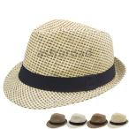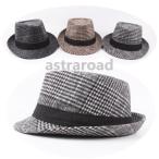 中折れハット メンズ キッズ 中折れ帽 パナマハット 帽子 ハット おしゃれ チェック柄 あたたか 防寒 秋 58cm/54cm 父の日