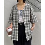ブラウス シャツ 「ユニセックス」パナマ織り/袖配色/クロス半袖チェックシャツ レディース メンズ