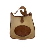 HERMES◆エブリン1GM パナマ ストロー/ショルダーバッグ/キャンバス/BRW//