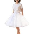 パニエ ペチコート ミニ丈 ロング チュール スカート 3層 ボリューム (ホワイト 50cm)
