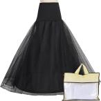 パニエ ロング 持ち運び 収納袋付 ボリューム Aライン フリーサイズ 黒( ブラック, Free Size)