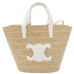 セリーヌ ティーン トリオンフ クラシック パニエ ハンドバッグ かごバッグ ベージュ ホワイト ラフィア レザー CELINE 【中古】