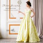 ロングドレス 演奏会 結婚式 発表会 レモンイエロー ジャガード織り ステージ パーティー ガラ ゴージャス 大きいサイズ FD-080267