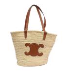【天白】セリーヌ かごバッグ トートバッグ パニエ トリオンフ ミディアム ラフィア レザー ナチュラル ブラウン 鞄