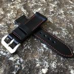 日本製 ハンドメイド パネライ スタイル オイルバケッタ製法 イタリアンレザー ヌメ革/レザーベルト ブラック×ブラックステッチ 腕時計 替えベルト LEVEL7