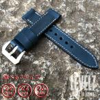 日本製 ハンドメイド パネライ スタイル ステア ヌメ革/レザーベルト ブルー×ブラックステッチ 腕時計 替えベルト LEVEL7