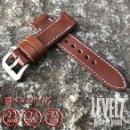 日本製 ハンドメイド パネライ スタイル 国産なめし オイルスムースレザーベルト ヌメ革 ブラウン×ライトブランステッチ 腕時計 替えベルト LEVEL7