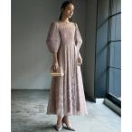 【対象商品30%OFFクーポン】レディース ワンピース ドレス wave piping frare dress ANDRESD アンドレスド ウェーブ パイピング フレア レース 刺繍 半袖 パフスリーブ ロングワンピース スクエアネック Donoban 体型カバー セレモニー オケージョン パーティー フォーマル
