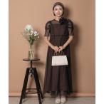 ドレス 「LEJA」フラワーディテールパフスリーブIラインワンピースドレス美脚効果結婚式 パーティードレス 成人式 二次会 同窓会 お呼ばれ オケージ